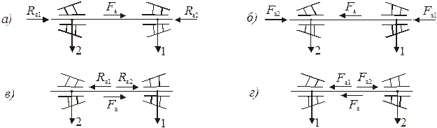 При установке вала на радиально-упорных подшипниках, осевые силы Ra, нагружающие подшипники, находят с учётом осевых составляющих Rs от действия радиальных нагрузок Rr