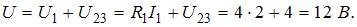 (см. рис.), то напряжение U на зажимах цепи, равно ___ В.