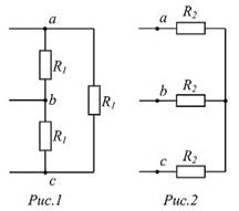 При замене трех одинаковых ветвей, соединенных треугольником (рис. 1), тремя ветвями, соединенными звездой (рис. 2), сопротивления новых ветвей будут в три раза меньше, то есть