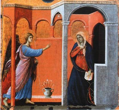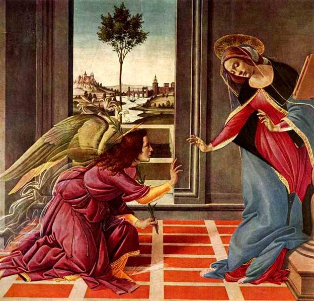 Всегда приветствие архангела и испуг Богоматери. Даже лилии есть.