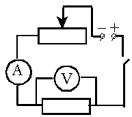 1. Для выполнения работы соберите электрическую цепь из источника тока, амперметра, реостата, проволочного резистора сопротивлением 2 Ом и ключа. Параллельно проволочному резистору присоедините вольтметр (см. схему).