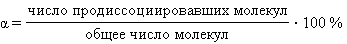 В воде равновесие смещено вправо и растворенный хлористый водород диссоциирован полностью. В бензоле растворенный HCl ведет себя как слабый электролит. Важной характеристикой электролитов служит степень диссоциации α: