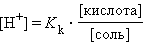 Следовательно, концентрация ионов H+ этого раствора будет определяться соотношением концентраций кислоты и соли, взятых для его приготовления.