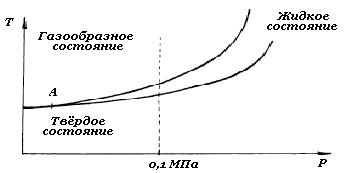При давлениях выше точки А переход металла из твердого в газообразное состояние происходит через жидкое. Если давление оказывается ниже точки А, то происходит переход вещества из твердого состояния сразу в газообразное. Такой переход носит название сублимации. Процесс перехода металла из одного агрегатного состояния в другое протекает при изменении внешних условий (давления, температуры) и сопровождается резким изменением физических и механических свойств.