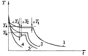 Рис.2.3. Кривые охлаждения металла при кристаллизации