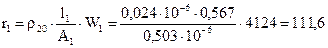 5) активное сопротивление первичной обмотки r1, если средняя длина её витка l = 0,567 м, сечение провода А1 = 0,503 мм2, удельное сопротивление