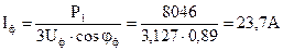 Трёхфазный двигатель мощностью 7 кВт, 220/127 В работает при номинальной нагрузке с коэффициентом мощности