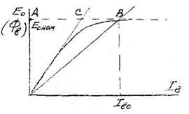 имеет вид прямой линии. По мере возрастания потока растёт магнитное сопротивление стальных участков магнитопровода. При индукции в стали более 1,7÷1,8Т магнитное сопротивление стальных участков резко возрастает и характеристика Х.Х. становится нелинейной. Номинальный режим работы синхронных генераторов соответствует «колену», при этом коэффициент насыщения kнас=АВ/АС=1,1÷1,4.