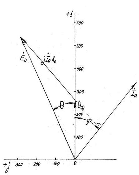 Падение напряжения на синхронном индуктивном сопротивлении: