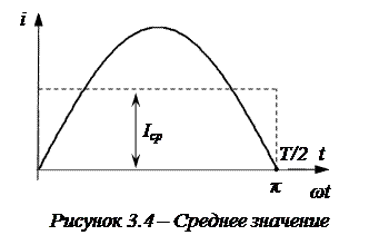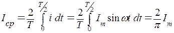 Среднее значение синусоидального тока определяется как среднее арифметическое значение соответствующей величины за полпериода.