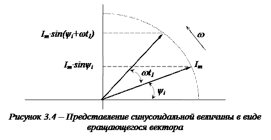 На координатной плоскости (рис. 3.4) под углом yi откладываем вектор Im. Проекция вектора на ось ординат дает мгновенное значение этого тока в момент