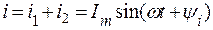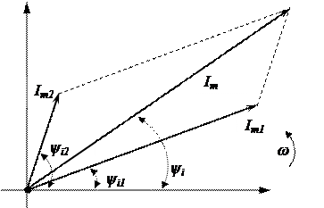 Так как частота этих токов одинакова, то они вращаются с одинаковой частотой ω. Т.е. эти вектора друг относительно друга неподвижны, то для определения Im можно применить операцию векторного сложения. В результате такого сложения мы получим величины Im и yi, а следовательно все характеристики мгновенного значения результирующего тока i.