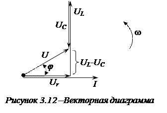 Соотношения между величинами действующих значений напряжений на элементах цепи, можно оценить с помощью векторной диаграммы (рис. 3. 12).