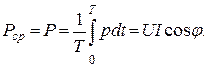 Активной мощностью называют среднее значение мгновенной мощности за период: