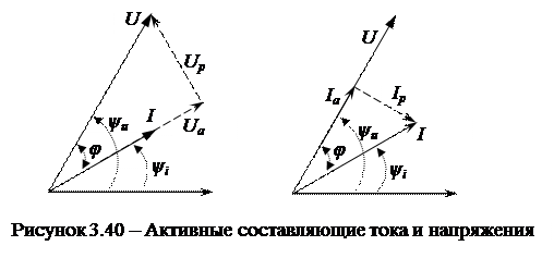 В общем случае активную мощность можно определить, используя активную составляющую напряжения и тока: