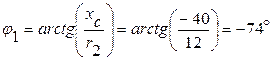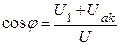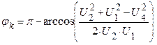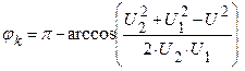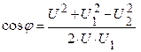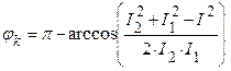 – угол между величиной тока и напряжением на катушке индуктивности определяем с использованием теоремы косинусов:
