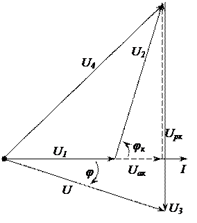 Параметры катушки индуктивности и емкостного элемента определяем с использованием векторной диаграммы.
