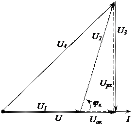 Параметры резистивного и емкостного элементов определяем с использованием векторной диаграммы.
