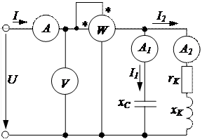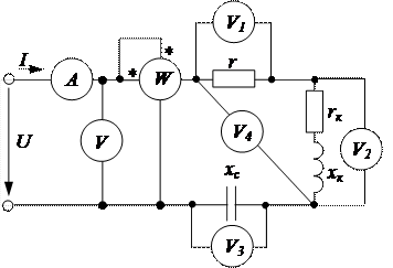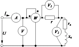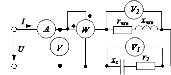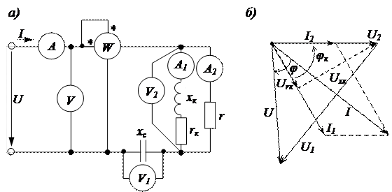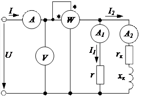 Параметры цепей переменного тока (r, rk, xk) можно определять по показаниям амперметров, вольтметра и ваттметра и с использованием векторных диаграмм.