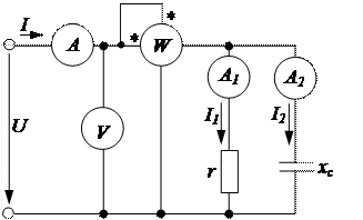 Полученный результат сравнивают с показанием ваттметра рассматриваемой схемы при последовательном соединении резистивного и емкостного элементов (рис. 3._).