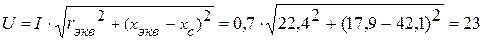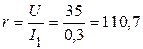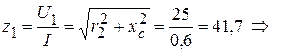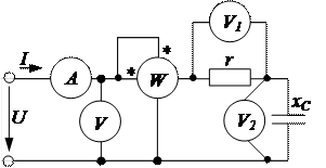 Определим параметры резистивного и емкостного элементовпо показаниям приборов: амперметр А измеряет силу тока