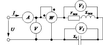 Полученный результат сравнивают с показанием ваттметра рассматриваемой схемы при последовательном соединении катушки индуктивности и резистивного элемента (рис. 3._).