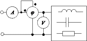 По показанием амперметра, вольтметра и вольтметра определяем входное сопротивление пассивного двухполюсника: