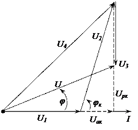 Параметры катушки индуктивности и резистивного элемента определяем с использованием векторной диаграммы.