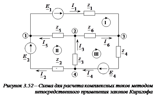 3. Решаем задачу методом непосредственного применения законов Кирхгофа (рис. 3.52).