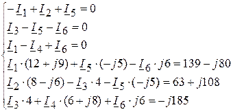 4. Проверяем рассчитанные комплексы токов, применяя первый закон Кирхгофа, согласно которому