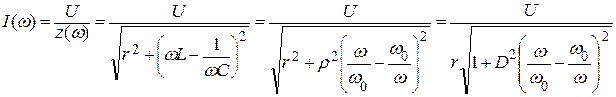 3. При w = wо – полное сопротивление минимальное z = r, следовательно, значение тока наибольшее: