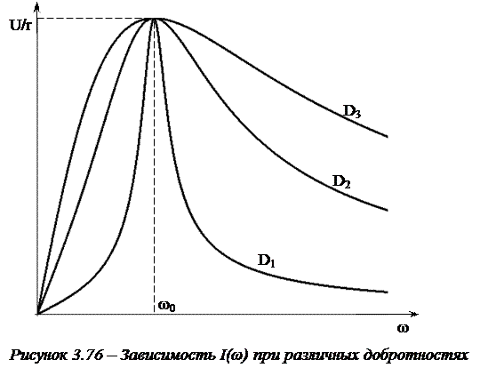 На рисунке 3.76 приведены графики I(w) при различных добротностях (D1 > D2 > D3).