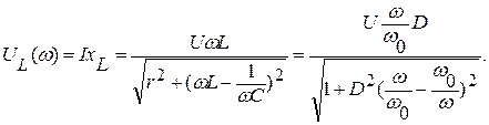 2. При изменении частоты 0 до w0 сопротивление xL увеличивается и ток I увеличивается, и следовательно UL возрастает и при w = w0 UL = D·U