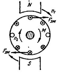 Рис. 3.10. Иллюстрация принципа действия асинхронного двигателя