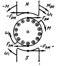 , по величине равный моменту электромагнитных сил М, действующих на полисы, а по направлению ему противоположный. Следовательно, для вращения полюсов к ним необходимо извне подвести мощность