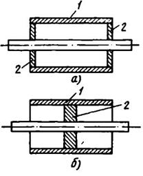 мм. Цилиндр ротора 1 укрепляется на валу двигателя либо с помощью двух торцевых металлических пробок 2 (рис. 3.48, а), либо с помощью одной пробки 2, запрессованной в центральную часть цилиндра (рис. 3.48, б).