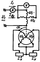 и вызывает значительную погрешность вращающегося трансформатора, которая возрастает с увеличением нагрузки (тока I2). Устранение искажающего действия э. д. с. самоиндукции обычно осуществляется так называемым симметрированием трансформатора. Симметрирование может быть первичным и вторичным.