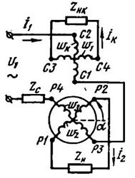 Иными словами, для полного вторичного симметрирования обмоток необходимо, чтобы полное сопротивление цепи косинусной обмотки было равно удвоенному полному сопротивлению цепи синусной обмотки (включая сопротивления компенсационной обмотки ZК и нагрузки ZH).