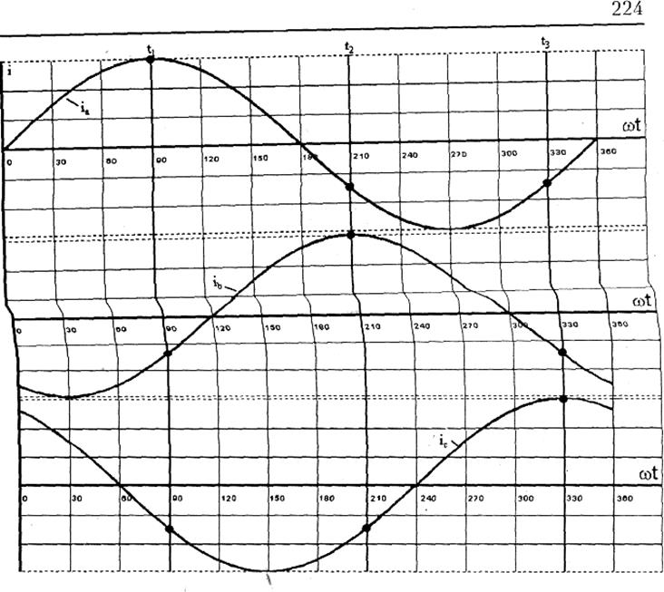 рис.1 Графики трехфазной системы тока статорной обмотки трехфазного асинхронного двигателя (а).