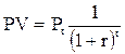 В переводе с английского Ргеsепt Vаluе (РV) обозначает настоящую или текущую стоимость, т.е. стоимость будущих денежных величин, приведенных к текущему времени путем их дисконтирования, т.к. при оценке инвестиционного проекта приходится сопоставлять сегодняшние затраты и будущие доходы, суммировать финансовые итоги разных лет. В случае дисконтирования единичной величины денежных средств, относящихся к одному какому-либо году t в будущем, используется зависимость