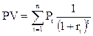 В случае, когда к ежегодным денежным суммам разных лет применяют разные ставки дисконтирования, расчет показателя РV производят по формуле: