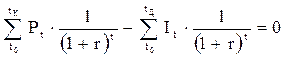 · если инвестор берет кредит в коммерческом банке под процент, равный внутренней норме рентабельности проекта, и вкладывает его в проект на n лет, то по окончании этого периода он выплатит величину кредита и проценты по нему, но не заработает никаких дополнительных средств;