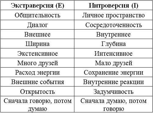 Согласно теории Юнга, различие между экстравертами и интровертами – наиважнейшее различие из всех четырех, потому что оно связано с источником, направлением и средоточием энергии человека. Отсутствие понимания между этими двумя типами может привести к серьёзным межличностным конфликтам.