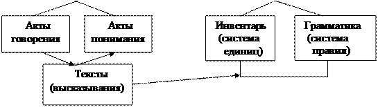 Язык (у швейцарского лингвиста Фердинанда де Соссюра «La langue») того или иного коллектива и есть находящаяся в распоряжении этого коллектива система элементов – единиц разных ярусов (слов, значащих частей слов и т.д.) плюс система правил функционирования этих единиц, также в основном единая для всех, пользующихся данным языком.