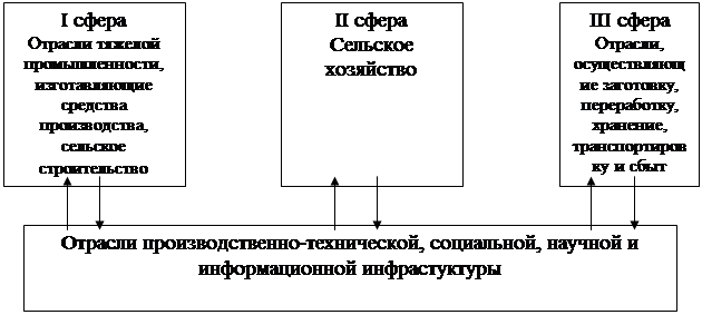 I сфера - ведущая, охватывающая ресурсные отрасли тяжелой промышленности, которые обеспечивают средствами производства сельское хозяйство, а также отрасли, осуществляющиие сельскохозяйственное строительство и другие;