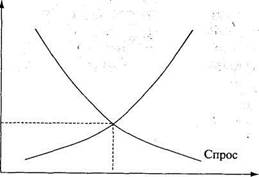 В точке пересечения кривых спроса и предложения возникает рыночное равновесие — мечта всех субъектов товарного хозяйства. При равновесной цене объем предложения равен объему спроса. Нет ни дефицитов с очередями, ни затоваренных складов с портящимися и гниющими изделиями рук человеческих. Любое отклонение цен от точки равновесия тут же вызывает к жизни стихийные силы рынка, восстанавливающие равновесие. Если цена выше точки равновесия, то предложение начинает превышать спрос, продавцы снижают цену. Если же цена оказывается ниже точки равновесия, то спрос будет превышать предложение, возникнут дефициты и очереди и сами покупатели начнут повышать цены. И в том и другом случае цена возвратится в состояние равновесия.