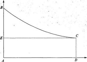Здесь DC — предельный продукт. Тогда AECD — доля рабочих, их зарплата. ЕВС — часть стоимости товара, вмененная капиталу, — это и есть процент. Если количество рабочих уменьшится, то предельный продукт возрастет, зарплата всех рабочих повысится. Словом, если зарплата низка, то в этом виноваты сами рабочие: их слишком много.