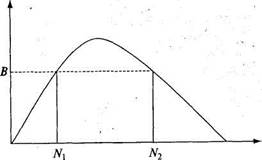 Характерно, что если правительство желает получить в бюджет сумму, равную В, то эта сумма будет получена при ставке налога N1 или при ставке налога N2 В первом случае капитал будет стимулирован, а во втором — дестимулирован.