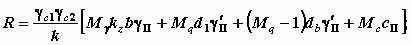 здесь c 1, c 2 коэффициенты условий работы; k коэффициент надежности; M, Mq, Mc безразмерные коэффициенты, зависящие от угла внутреннего трения; II удельный вес грунта расположенного ниже подошвы фундамента;