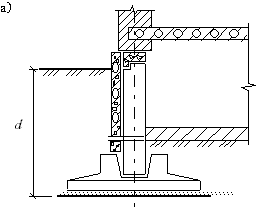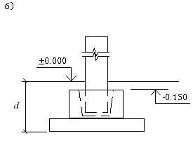 | Рис.Ф.9.3. Схемы к определению глубины заложения фундаментов d: а - фундамент внешней оси здания; б - фундамент внутри здания |